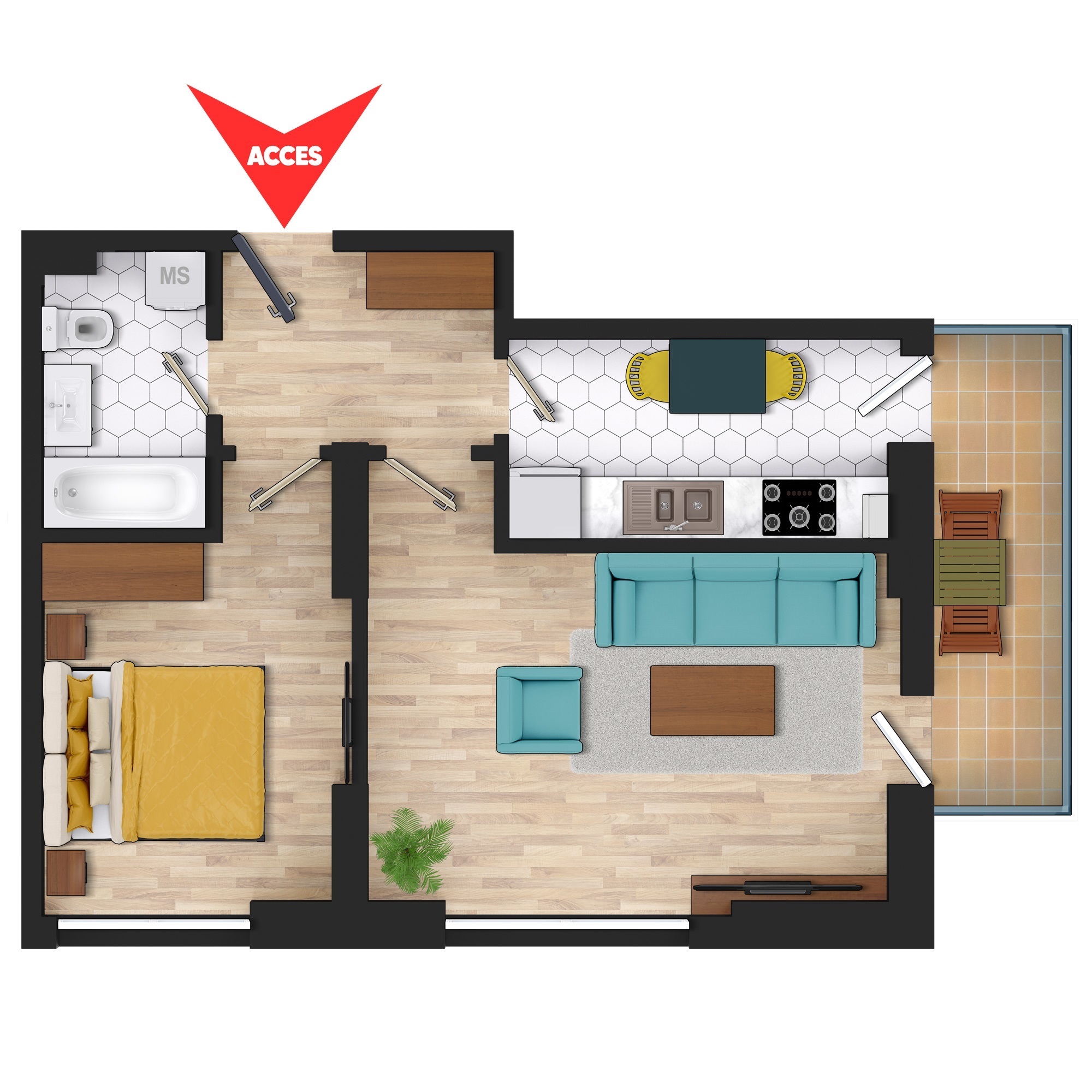 Astfel, cumparati doar camere mari cu suprafete real locuibile si in acelasi timp aveti si multe spatii de depozitare. Aceasta eficienta a putut fi realizata intrucat pe etajul curent nu s-a incercat "inghesuirea" a cat mai multor apartamente, ci s-a tinut cont doar de confortul persoanelor ce vor locui in apartamentele din acest imobil, punandu-se accent pe calitate si nu pe cantitate.