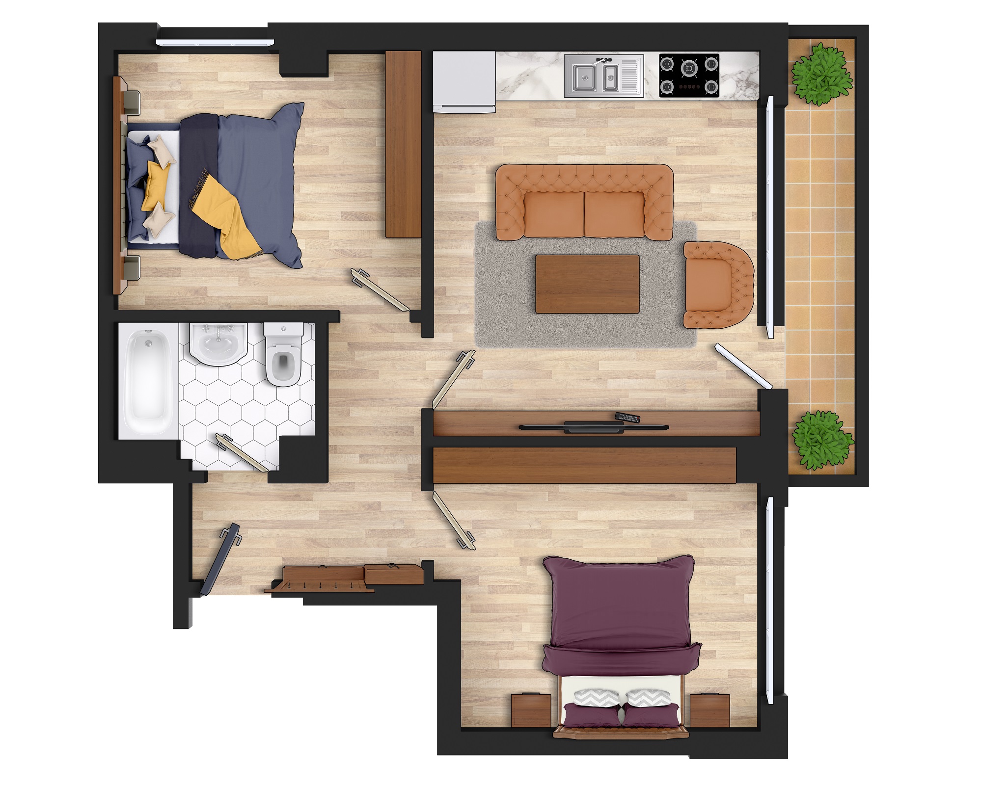Apartament 3 camere, decoamdat, situat la parterul imobilului.