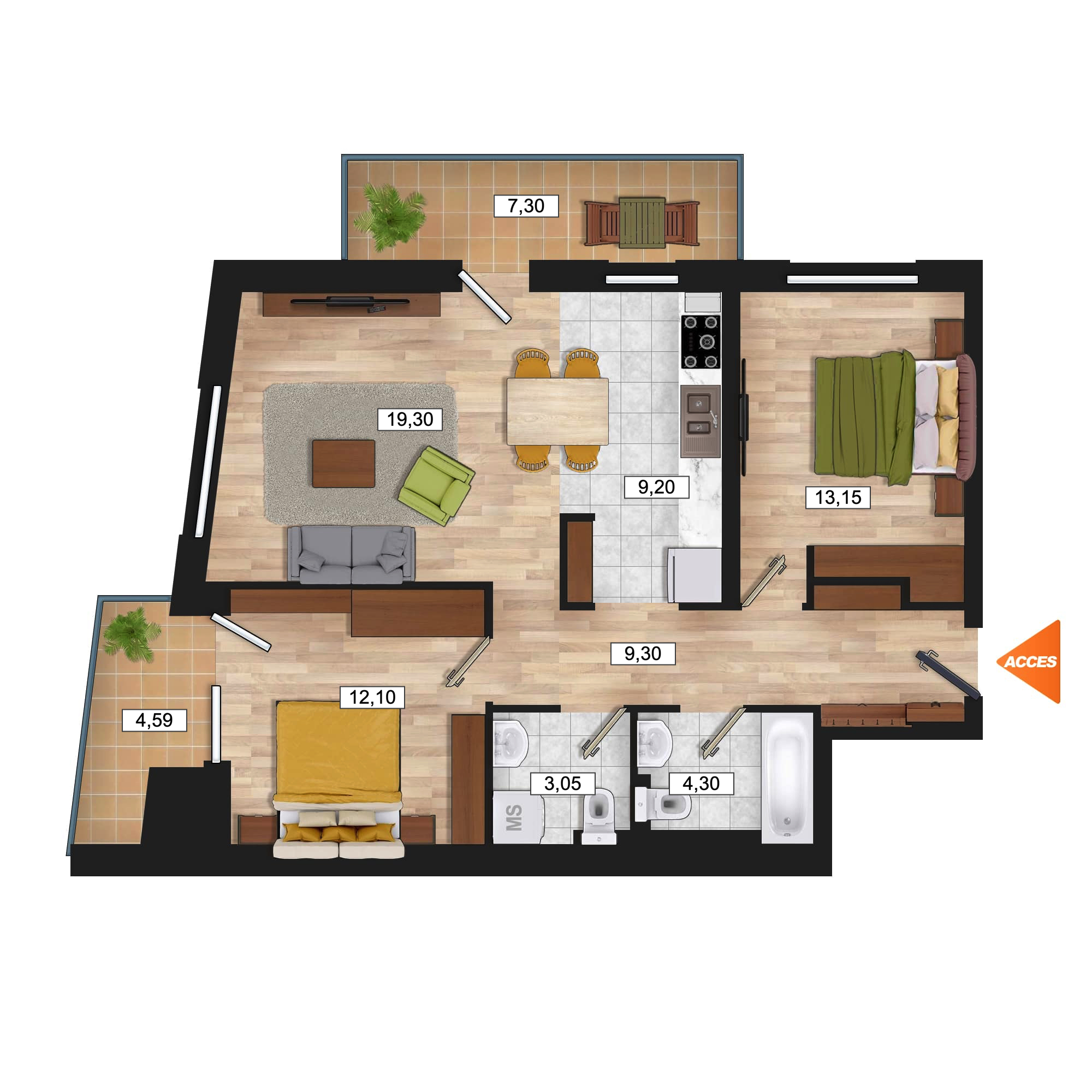 Bucătărie cu loc de luat masa ce poate fi închisă.