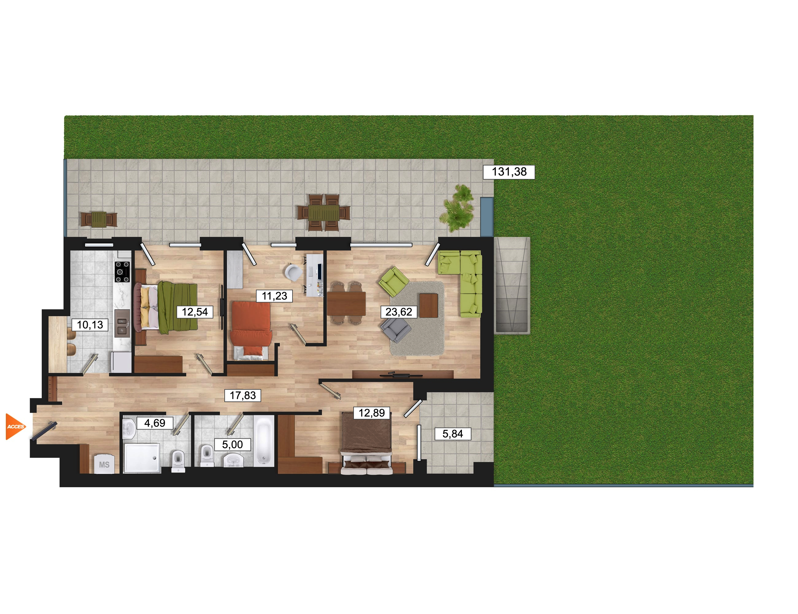 Apartament decomandat, 4 camere, grădină foarte mare, acces individual parcare.