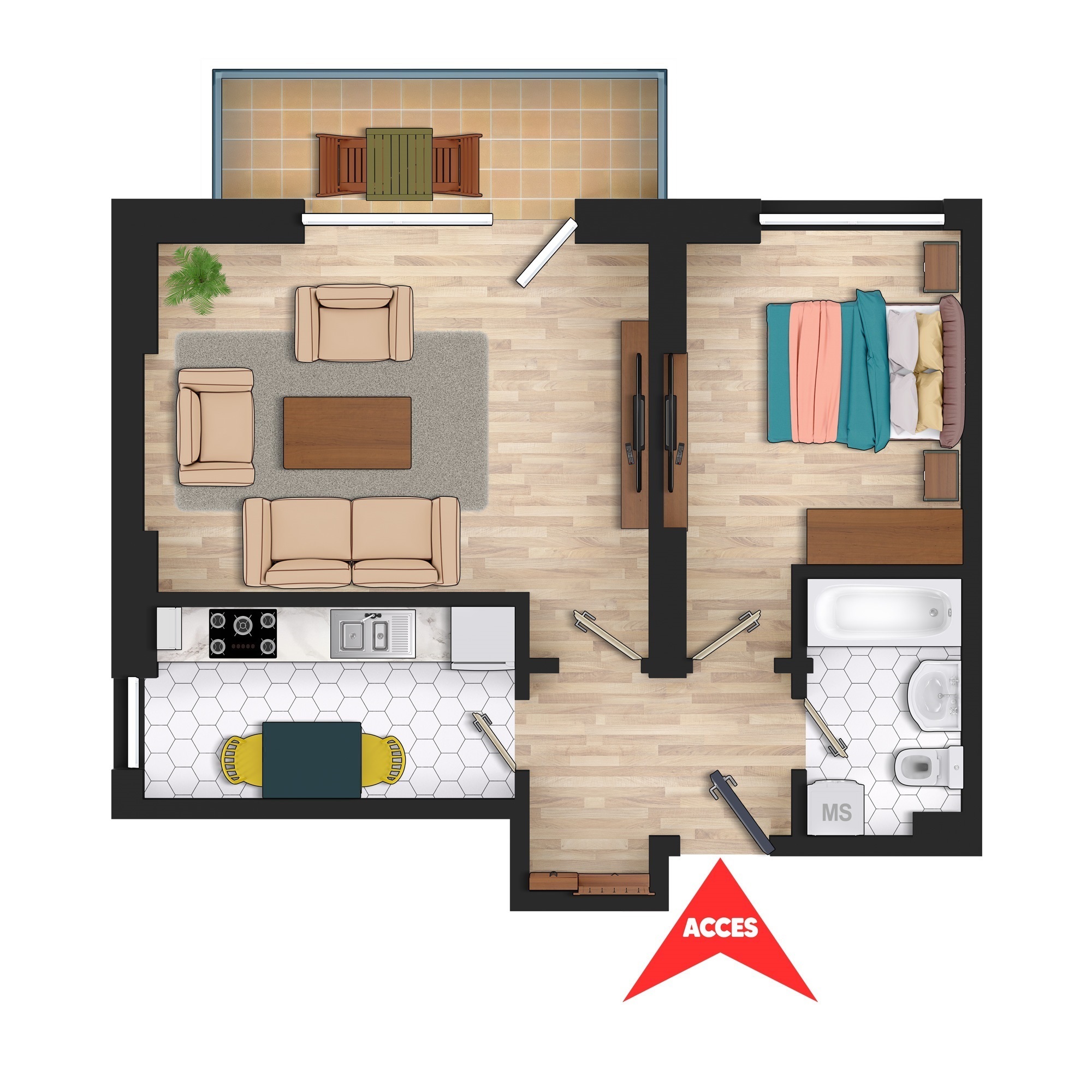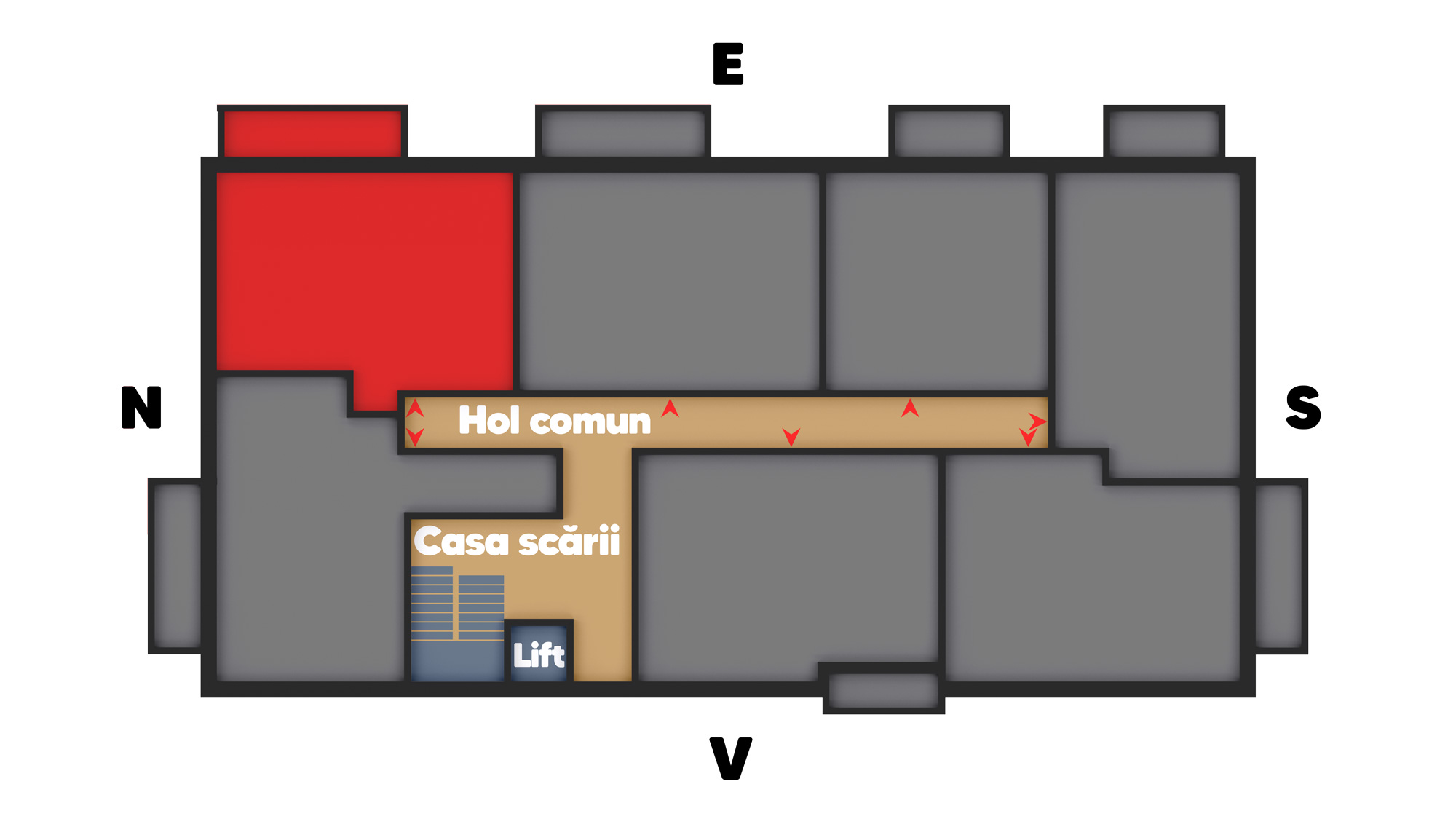 Astfel, cumparati doar camere mari cu suprafete real locuibile, iar in acelasi timp aveti si multe spatii de depozitare. Aceasta eficienta a putut fi realizata intrucat pe etajul curent nu s-a incercat "inghesuirea" a cat mai multor apartamente, ci s-a tinut cont doar de confortul persoanelor ce vor locui in apartamentele din acest imobil, punandu-se accent pe calitate si nu pe cantitate.